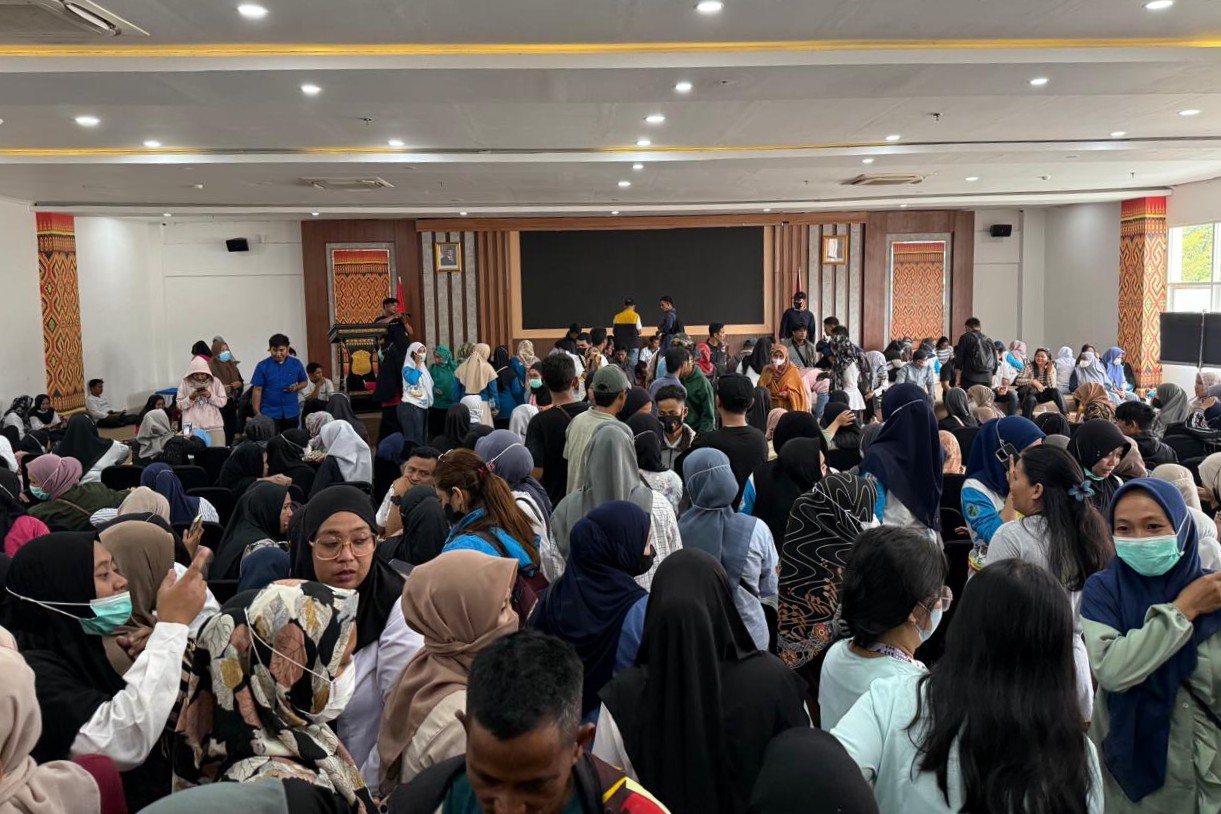 Massa tenaga kontrak yang berasal dari berbagai OPD datang dengan satu tuntutan: kepastian status kerja serta pembayaran hak-hak yang mereka anggap belum jelas. Sebagian di antara mereka mengaku sudah bekerja belasan tahun dengan sistem kontrak tahunan tanpa kejelasan masa depan.
